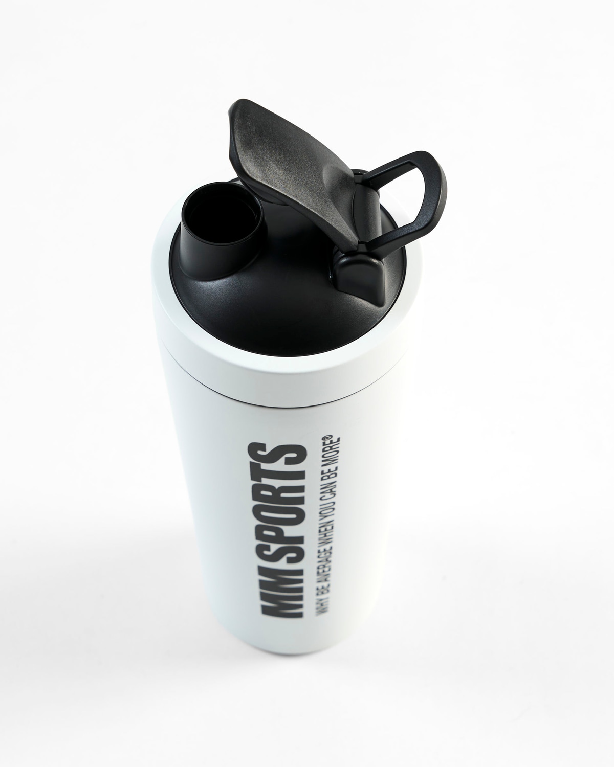 Flot og stilren shaker i rustfrit stål med MM Sports-logo. MM Sports Steel Shaker er lugtfri takket være det rustfri stål, som desuden sikrer, at din drik holder sig kold i træningscentret.