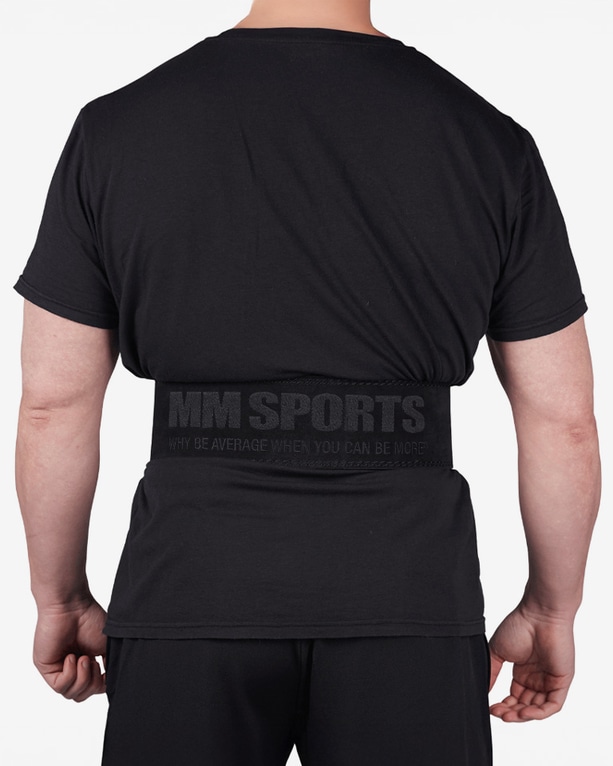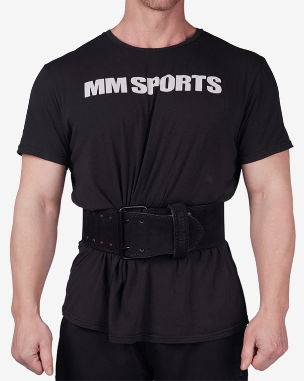 MM Sports logoet er broderet på bagsiden af bæltet.