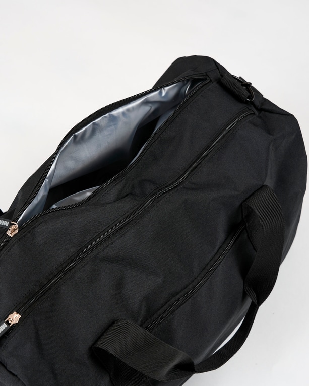 MM Sports Gym Bag har to hovedrum: ét rummeligt til dine almindelige træningsting og et separat vandtæt rum til fugtigt tøj eller håndklæde efter træning. Du slipper for at blande svedige ting med resten af indholdet.