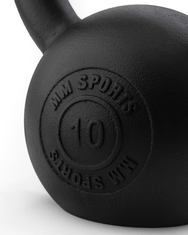 MM Sports kettlebells er robuste kettlebells fremstillet af støbejern, med pulverlakeret sort mat overflade, der får dem til at føles glattere og mere behagelige.