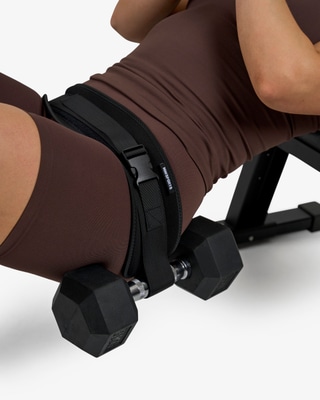 Bæltet er designet, så du kan fastgøre håndvægte eller kettlebells i enderne og få en stabil og komfortabel belastning under træningen. Perfekt til dig der vil træne hip thrusts derhjemme, i fitnesscenteret eller som supplement til din normale styrketræning.