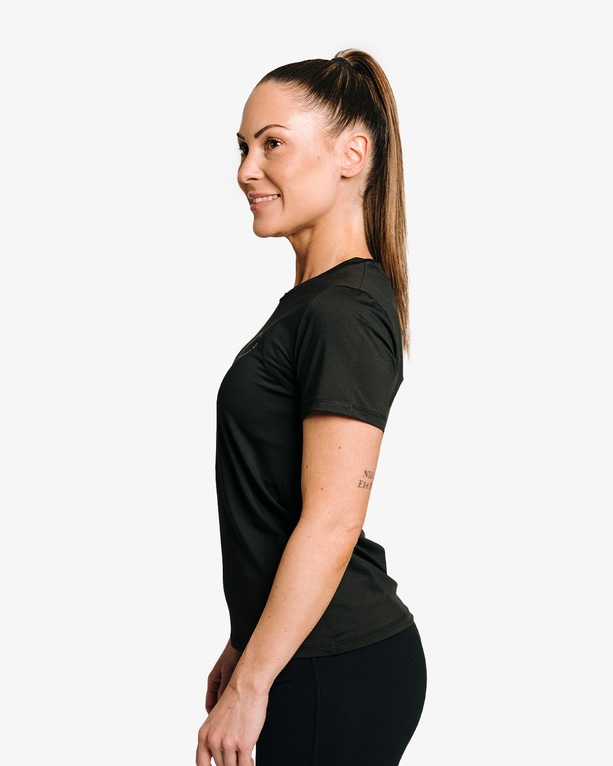 Denne T-shirt har en klassisk silhuet med et sporty udtryk uden at gå på kompromis med komforten. Det strækbare materiale bevæger sig med kroppen, uanset om du styrketræner, laver holdtræning eller bruger den i hverdagen.