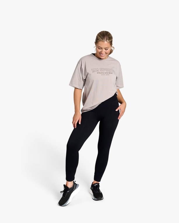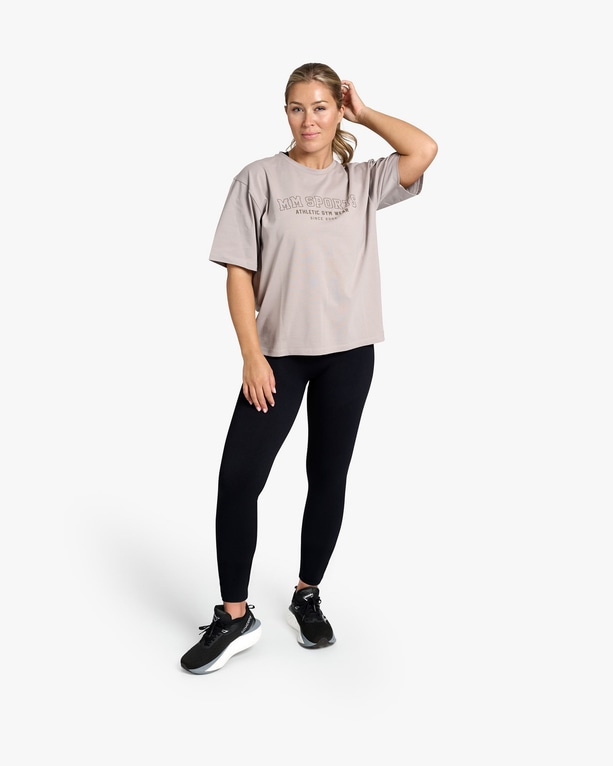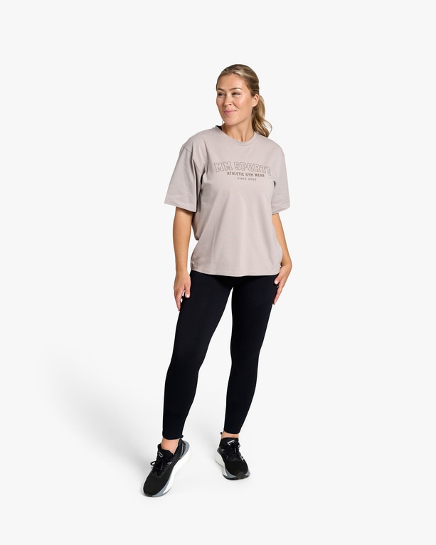 MM Sports Oversize T-shirt Wmn Varsity er en T-shirt med oversize pasform og en afslappet, luftig følelse. Den er lavet i en blød bomuldsblanding med let stræk, som giver dig både komfort og stil. Den fungerer lige godt i fitnesscentret som i hverdagen og fås i farverne sort, faded blue og taupe.
