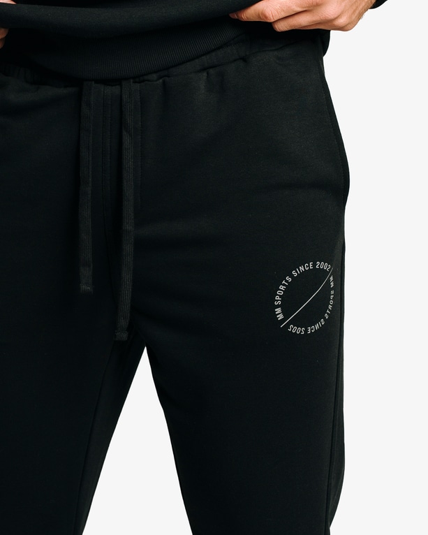 Lette og komfortable joggers med et stilrent look. Fremstillet i en blød bomuldsblanding, der giver behagelig komfort både til og fra træning og i hverdagen. På benet sidder et rundt MM Sports-emblem, som giver et diskret sporty touch. Bukserne har en baglomme og to åbne sidelommer – perfekt til mobilen eller nøglerne. Elastik og snøre i taljen giver en justerbar pasform, mens ribkanter ved benene holder bukserne på plads.