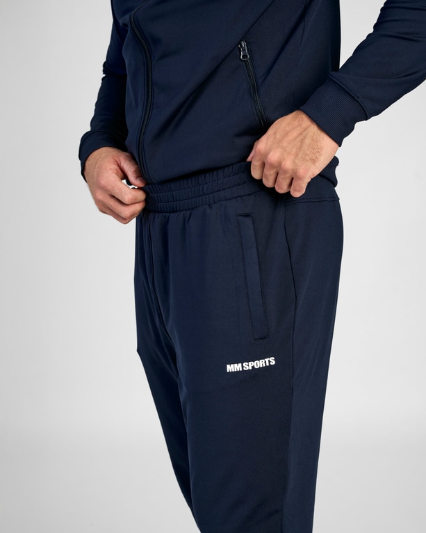 Et par stilfulde og behagelige træningsbukser med normal pasform. De har et enkelt og rent design, der gør dem nemme at matche med det meste. Pasformen er behagelig og fleksibel over lår og lægge, hvilket giver et flatterende og atletisk look uden at være for stramt. Bukserne er lavet i et blødt og strækbart materiale og har en komfortabel elastik i taljen. Lommer med lynlås på begge sider giver praktisk opbevaring. MM Sports-logoen er diskret placeret i hvid tekst øverst på låret, som en flot og stilren detalje.