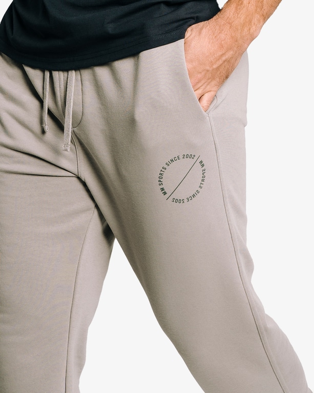 Lette og komfortable joggers med et stilrent look. Fremstillet i en blød bomuldsblanding, der giver behagelig komfort både til og fra træning og i hverdagen. På benet sidder et rundt MM Sports-emblem, som giver et diskret sporty touch. Bukserne har en baglomme og to åbne sidelommer – perfekt til mobilen eller nøglerne. Elastik og snøre i taljen giver en justerbar pasform, mens ribkanter ved benene holder bukserne på plads.