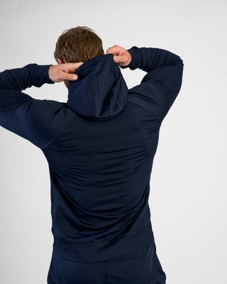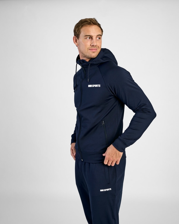 En træningshættetrøje til mænd i samme smukke materiale som Loose Pants. Et let og blødt materiale, der ånder og transporterer fugt væk. Den har en strammere pasform og lynlås foran og høj krave, hvor lynlåsen går helt op. Forlommer der er udstyret med lynlås, så mobil eller nøgler kan opbevares sikkert.