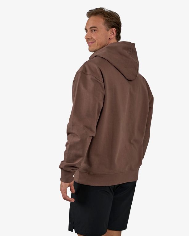En hoodie i kraftigt materiale med afslappet pasform – perfekt til dig, der ønsker noget solidt uden at det føles tungt. Den uopkradsede inderside giver en naturlig fornemmelse mod huden og gør den ekstra behagelig at have på – både under opvarmning og mellem sæt.