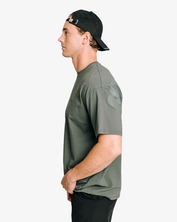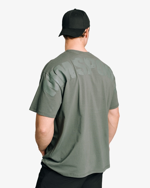 Cool t-shirt med overdimensioneret pasform og faldne skuldre, der styrker overkroppen. Vores klassiske hardcore pres bagpå over skuldrene. Behagelig at have på under opvarmningen med en sweater nedenunder eller som den er under hele træningen. Med løs pasform og god kvalitet vil dette være din yndlings-t-shirt og hjælpe dig gennem hver træning.