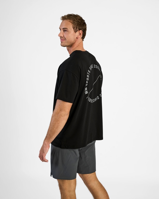 En t-shirt med oversized pasform og tydelig karakter. Fremstillet i en blød og strækbar bomuldsblanding, som giver både komfort og bevægelsesfrihed. På ryggen sidder et stort, rundt MM Sports-emblem, der giver et sporty og stilrent look.