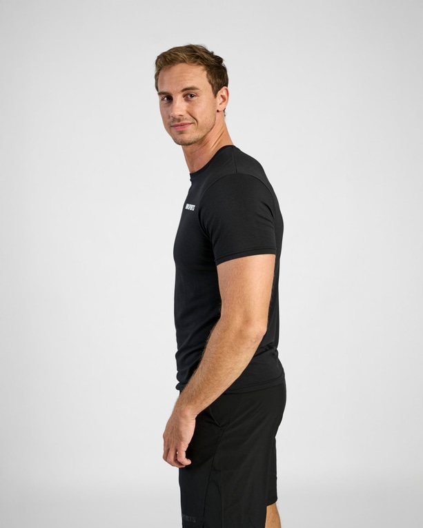 En T-shirt, som bliver din nye favorit at træne i og hjælper dig med at præstere maksimalt. Den er fremstillet i et materiale, som holder dig afkølet under hele træningen, og som har en blødhed, der gør den meget behagelig at have på. En atletisk og flatterende pasform, der sidder stramt over skuldre, bryst og arme. Den har et mindre diskret tryk foran på brystet.