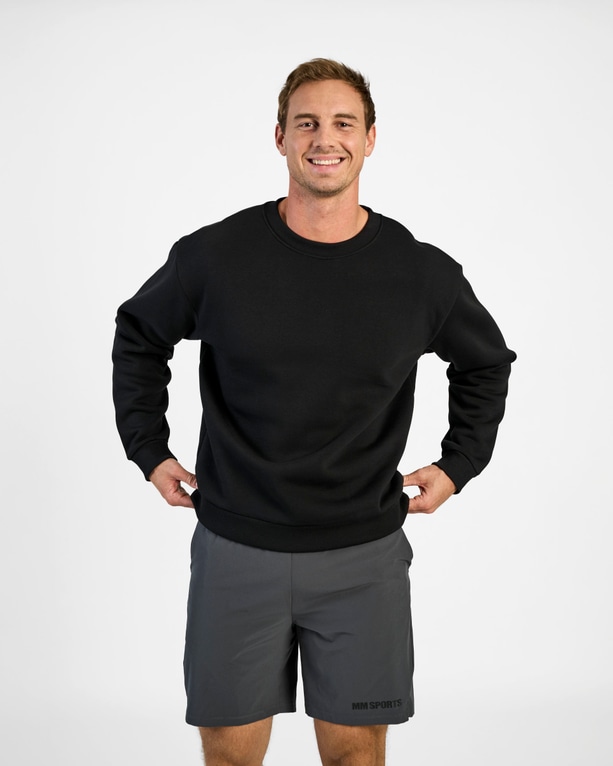 En sweatshirt med oversized pasform og tydelig attitude. Fremstillet i en blød og slidstærk bomuldsblanding, der føles behagelig og holder formen vask efter vask. På ryggen prydes den af et stort, rundt MM Sports-emblem, som giver et stilrent og sporty look. Ribkanter ved ærmer og bund holder trøjen på plads og holder kulden ude.