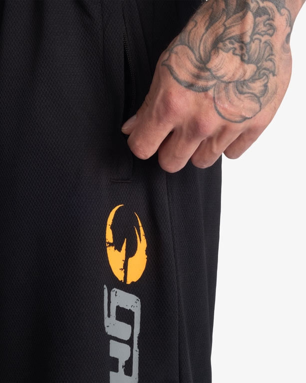 Detaljer: Lynlåslommer, meshstof, GASP-logo på venstre ben